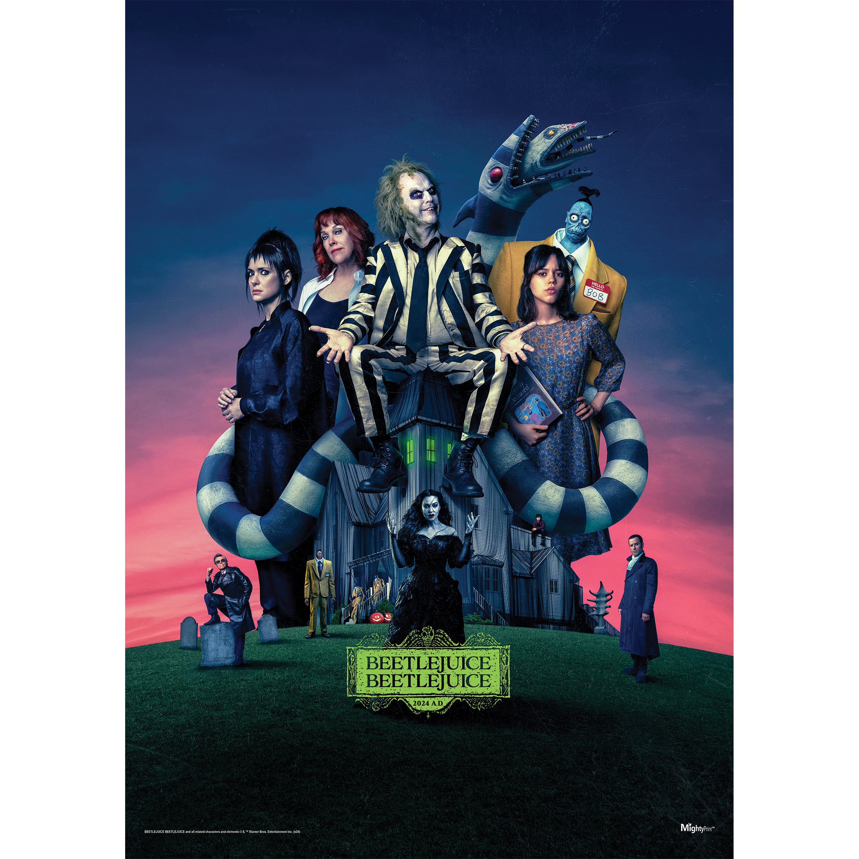- This officially licensed Beetlejuice 17" x 24" MightyPrint™ Wall Art features the ensemble from Tim Burton’s 2024 sequel Beetlejuice Beetlejuice.