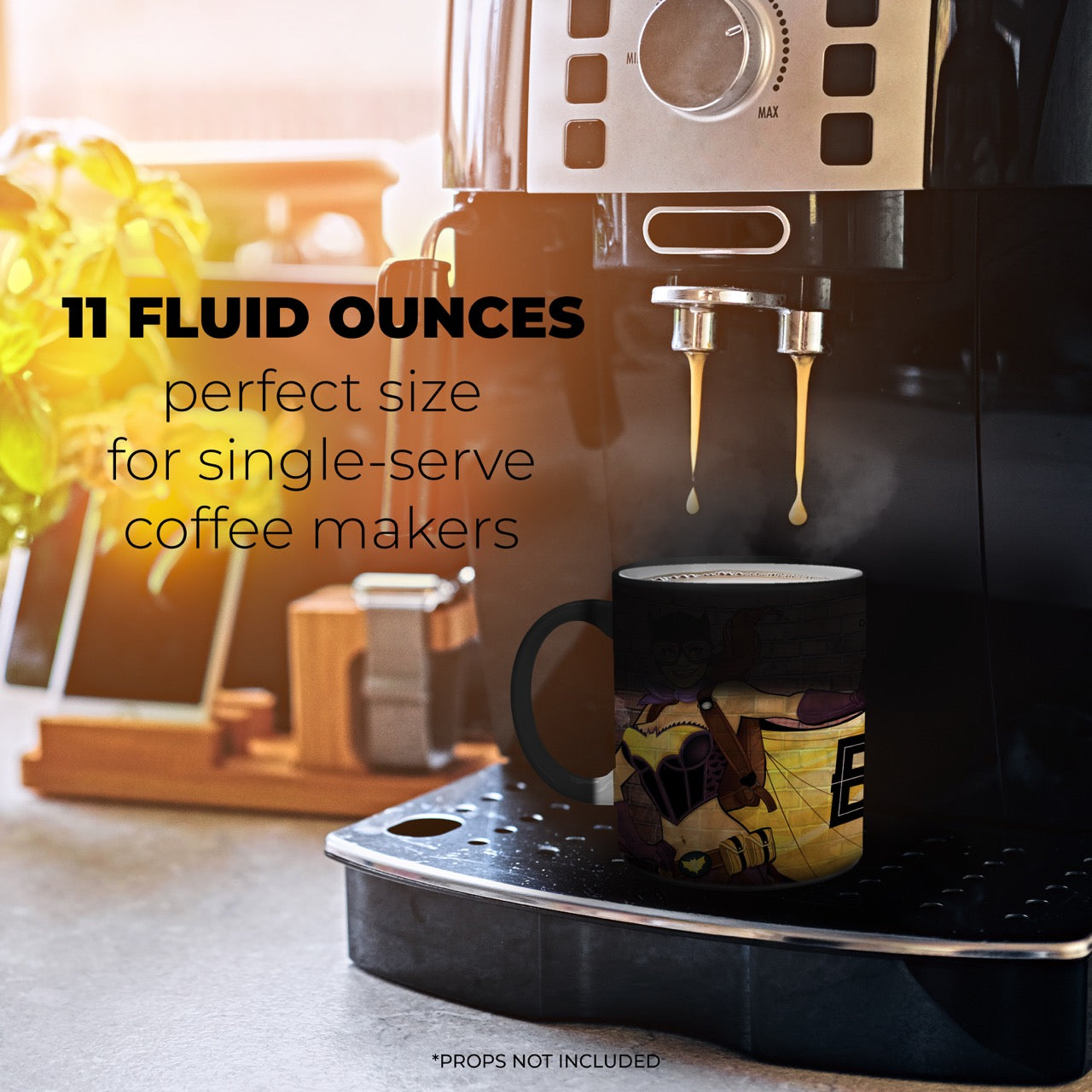 Add a little Gotham flair to your morning routine with this officially licensed Morphing Mugs® Heat-Sensitive Mug featuring Batgirl! At first glance, the mug looks like a sleek, glossy black coffee cup. But pour in your favorite hot beverage and watch the magic unfold as the heat-sensitive technology reveals vibrant artwork of Batgirl against a brick wall backdrop with a vintage “Batgirl Radio Hour” theme.