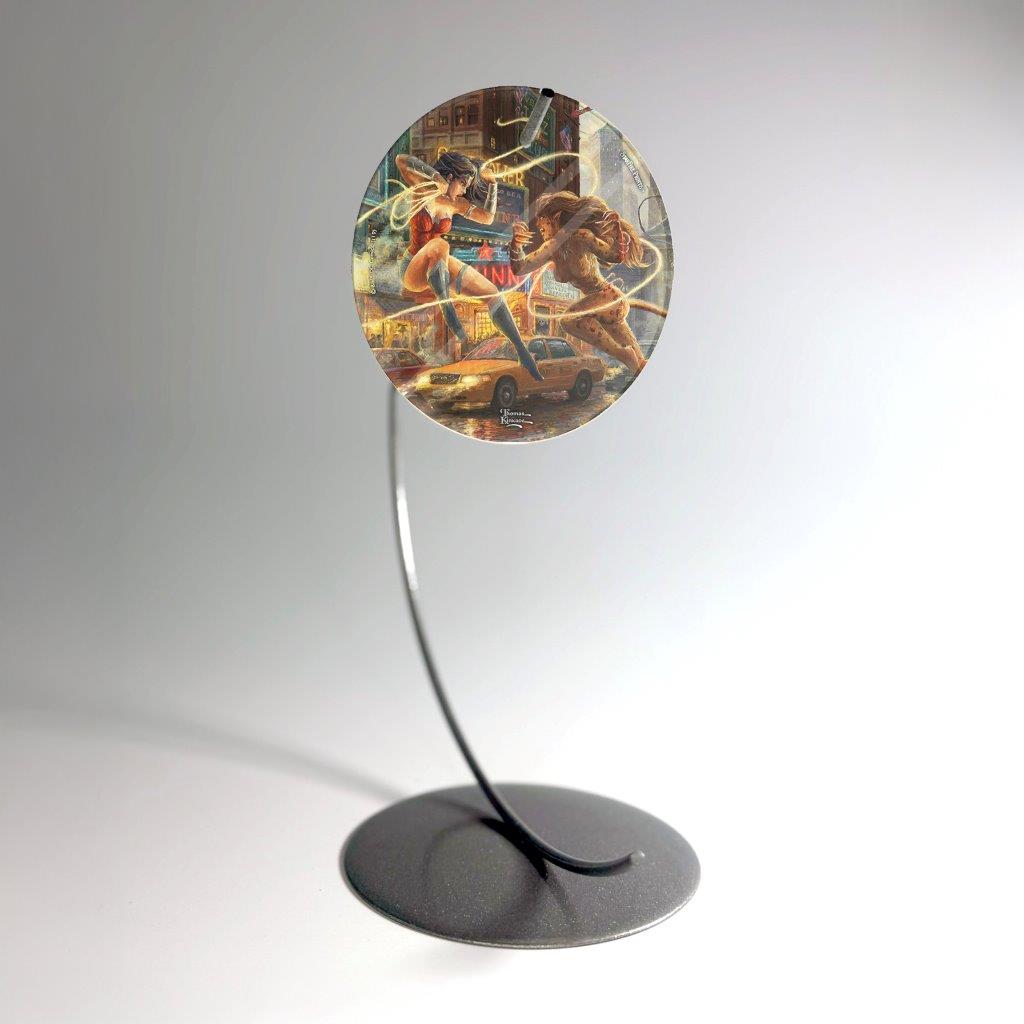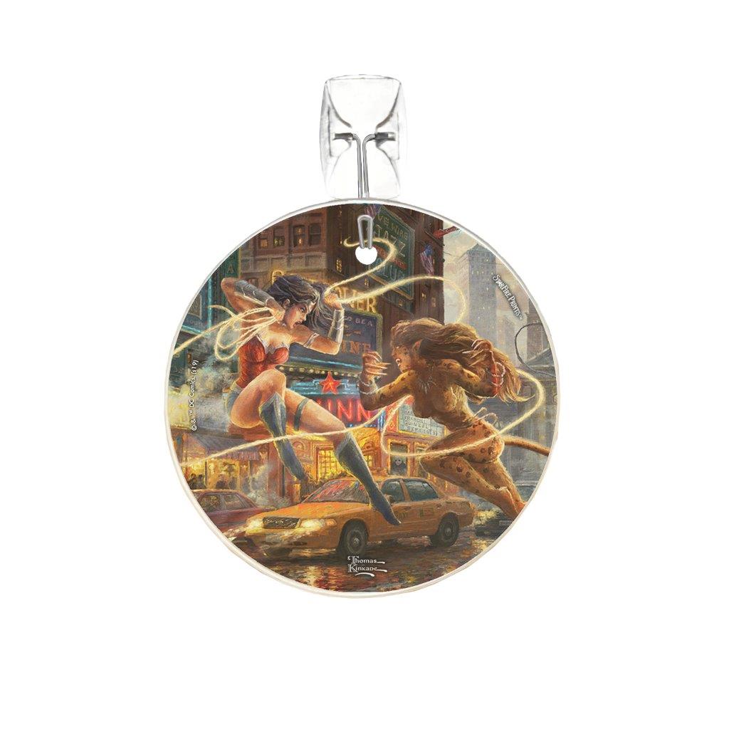 - Stunning Glass Display – This 3.5” round and 3/16” thick DC Comics light-catching glass art featuring Wonder Woman and Cheetah, beautifully enhances any space, whether placed near a window, on a shelf, or as part of a collection.