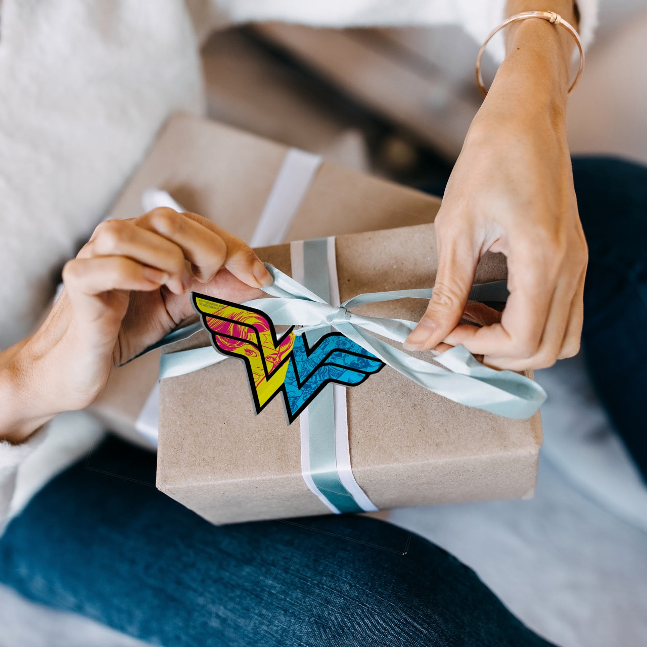 - Vibrant Acrylic Print – This DC Comics Wonder Woman Emblem-Shaped Acrylic Print featuring a split-color design all within the iconic Wonder Woman “W” emblem brings a sleek, modern touch to any space, enhancing your collection and home.