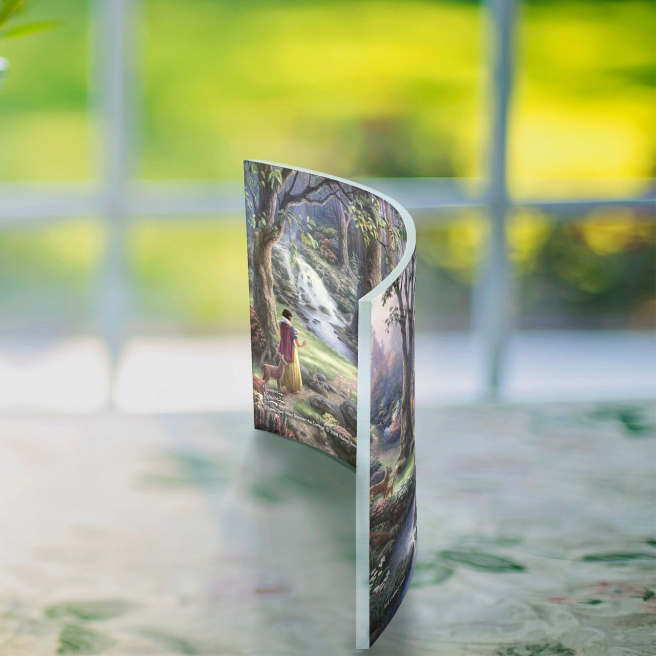 - Officially Licensed: Officially licensed Thomas Kinkade Disney curved acrylic print featuring the beloved moment when Snow White, surrounded by woodland animals, first encounters the charming cottage nestled deep within the forest.
