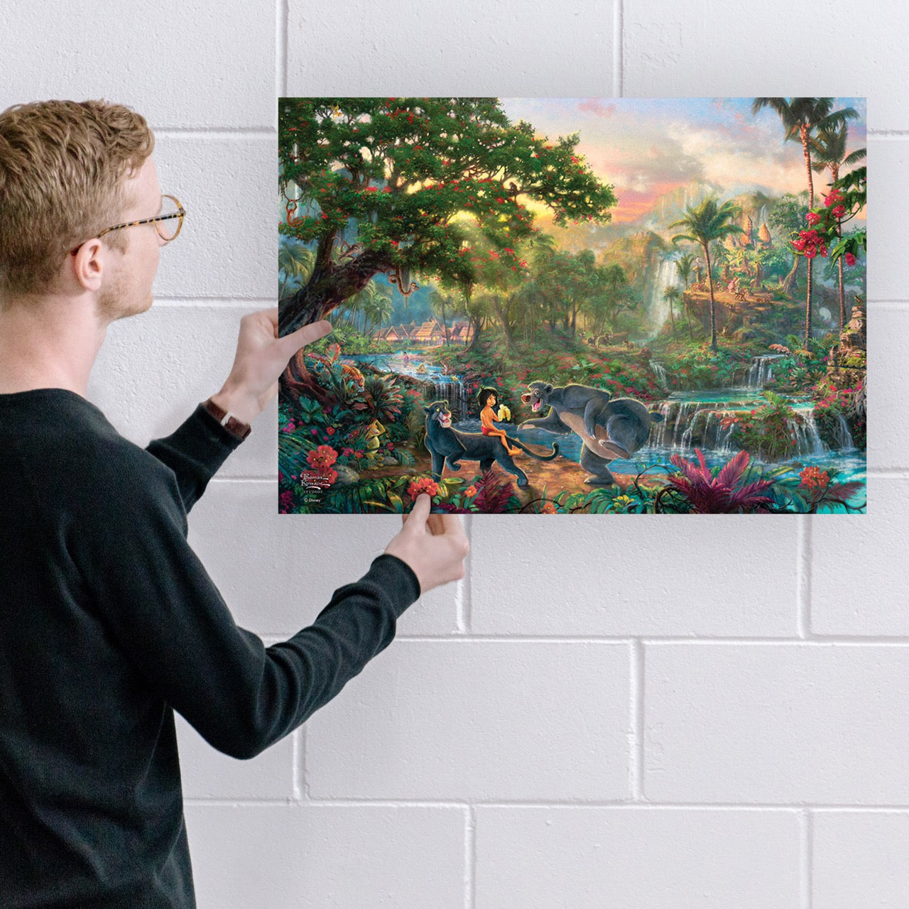 Turn any room into a tropical escape with this officially licensed MightyPrint™ Wall Art inspired by Disney’s The Jungle Book. This vibrant scene captures the heart of the jungle—lush flowers, glowing skies, and cascading waterfalls—while Mowgli, Baloo, and Bagheera bring the adventure to life in a classic Thomas Kinkade Studios style. Printed in rich, high-detail color, it’s an eye-catching statement piece for bedrooms, playrooms, game rooms, offices, or any Disney collection.