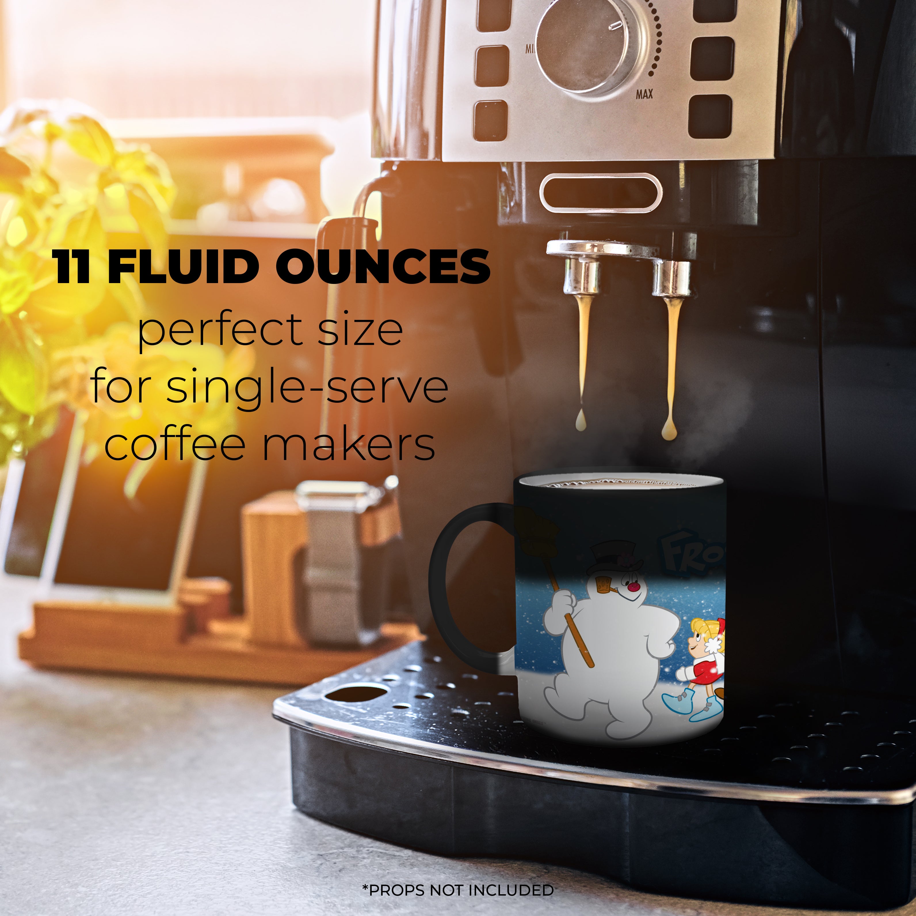 Don't worry, your coffee won't melt Frosty. Pour hot liquid into this officially licensed Frosty the Snowman mug and Frosty and the kids appear, ready to start their parade through town.