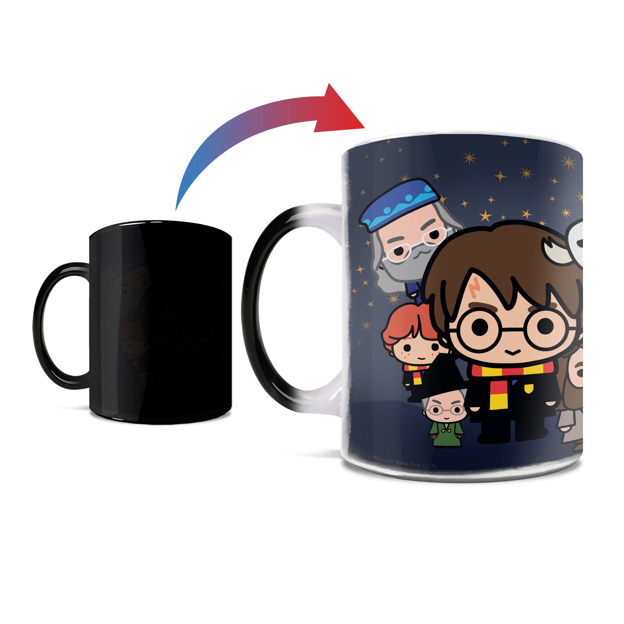 Hogwarts has never been so adorable. Pour hot liquid into this Morphing Mugs™ Heat-Sensitive Mug and the image appears. On one side, the Hogwarts Emblem proudly features the four Houses. Ravenclaw, Slytherin, Gryffindor, and Hufflepuff are all represented by their colors and emblematic animals. On the other side, Harry is surrounded by Dumbledore, Ron Weasley, Professor McGonagall, Hermione Granger, Hagrid, and of course, Hedwig. In the background, under the stars, is Hogwarts itself, looking as majestic and inviting as always. Hogwarts is my home!