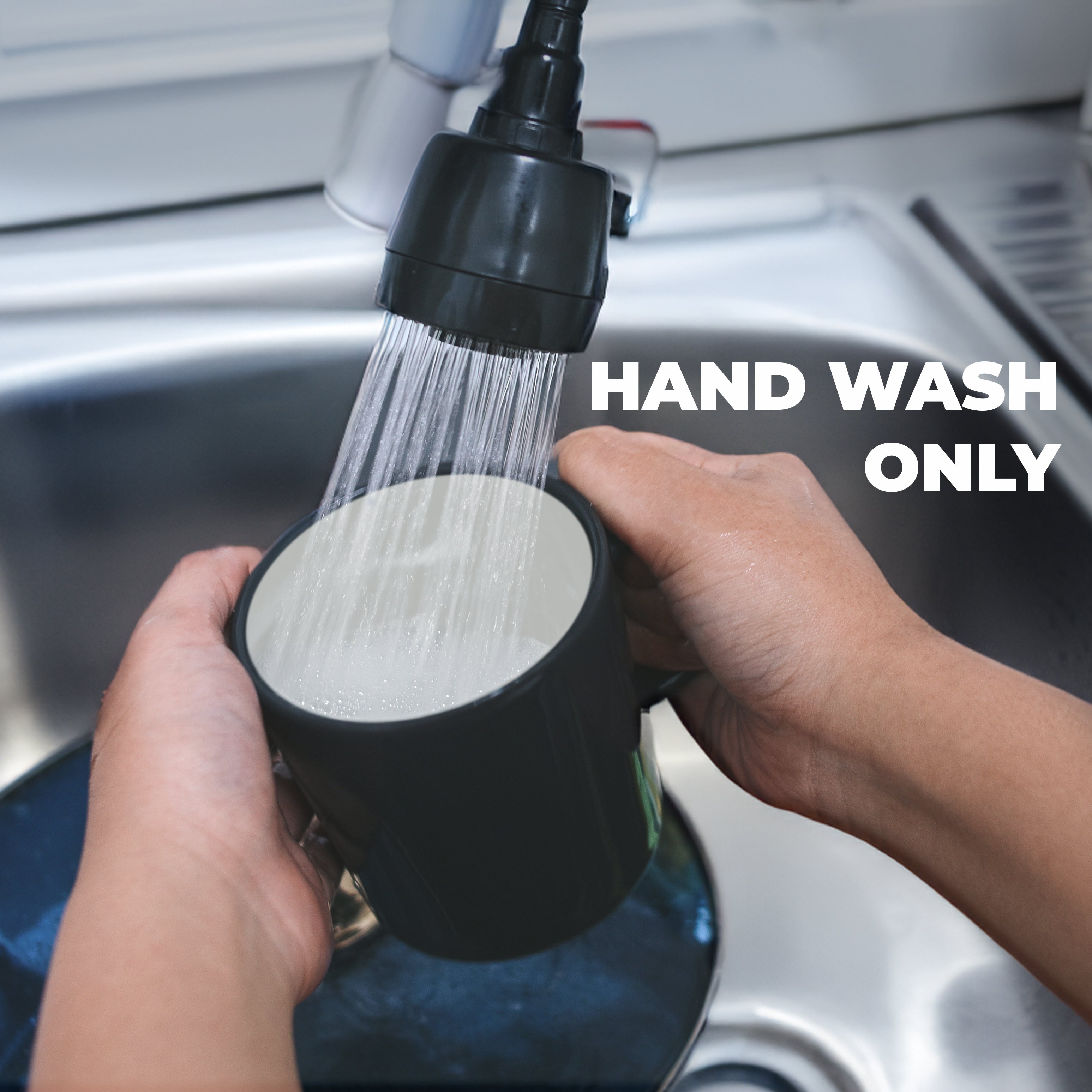 Morphing Mugs Heat-Sensitive Mugs appear to be black at room temperature. When you pour your favorite hot liquid into the drinkware, watch as the hidden image magically appears! While this mug may be used in the dishwasher or microwave, for the longest-lasting and highest quality product, we highly recommend against it.