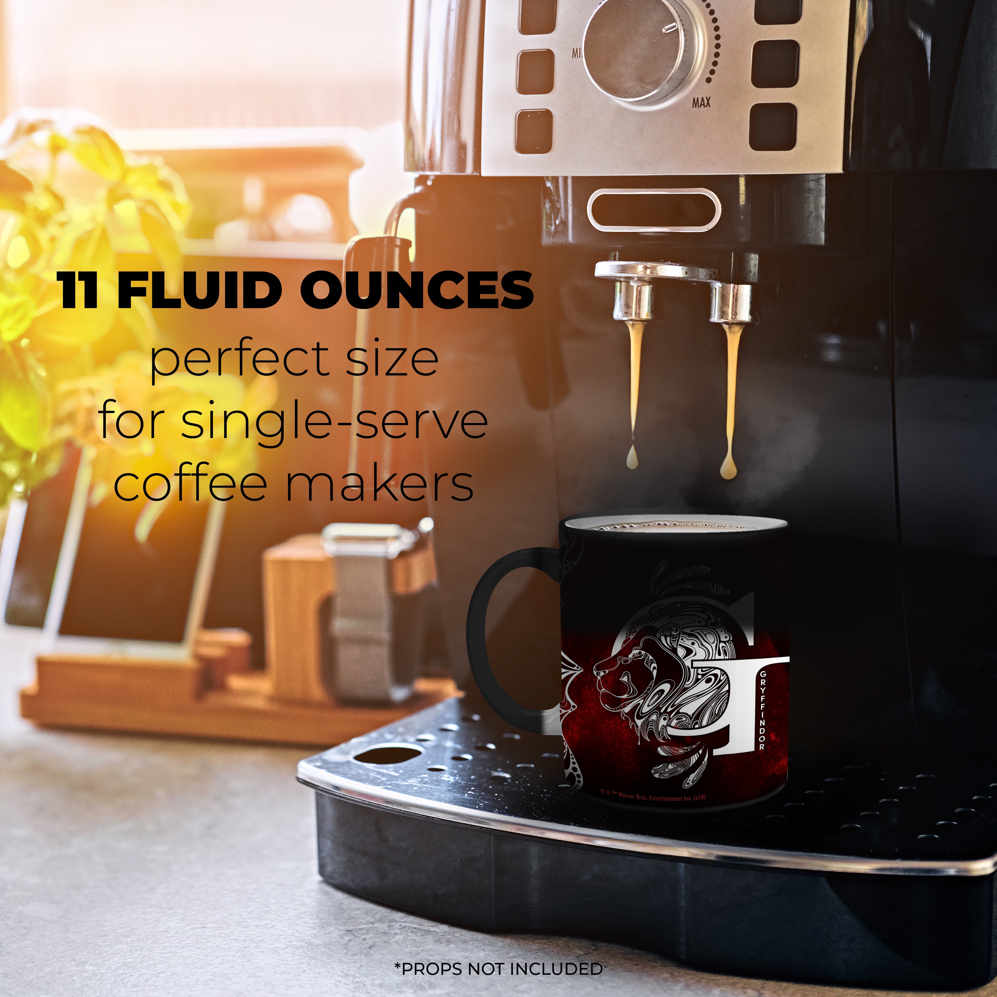 Show your support for Gryffindor with this Harry Potter Morphing Mugs® collectible. When you add your hot drink, the mug shows the Gryffindor scarlet, complete with an outline of a lion magically created with water and the Hogwarts crest. The exterior of this officially licensed 11oz mug transforms from black as hot liquid is added, revealing the hidden image in full vivid colors.