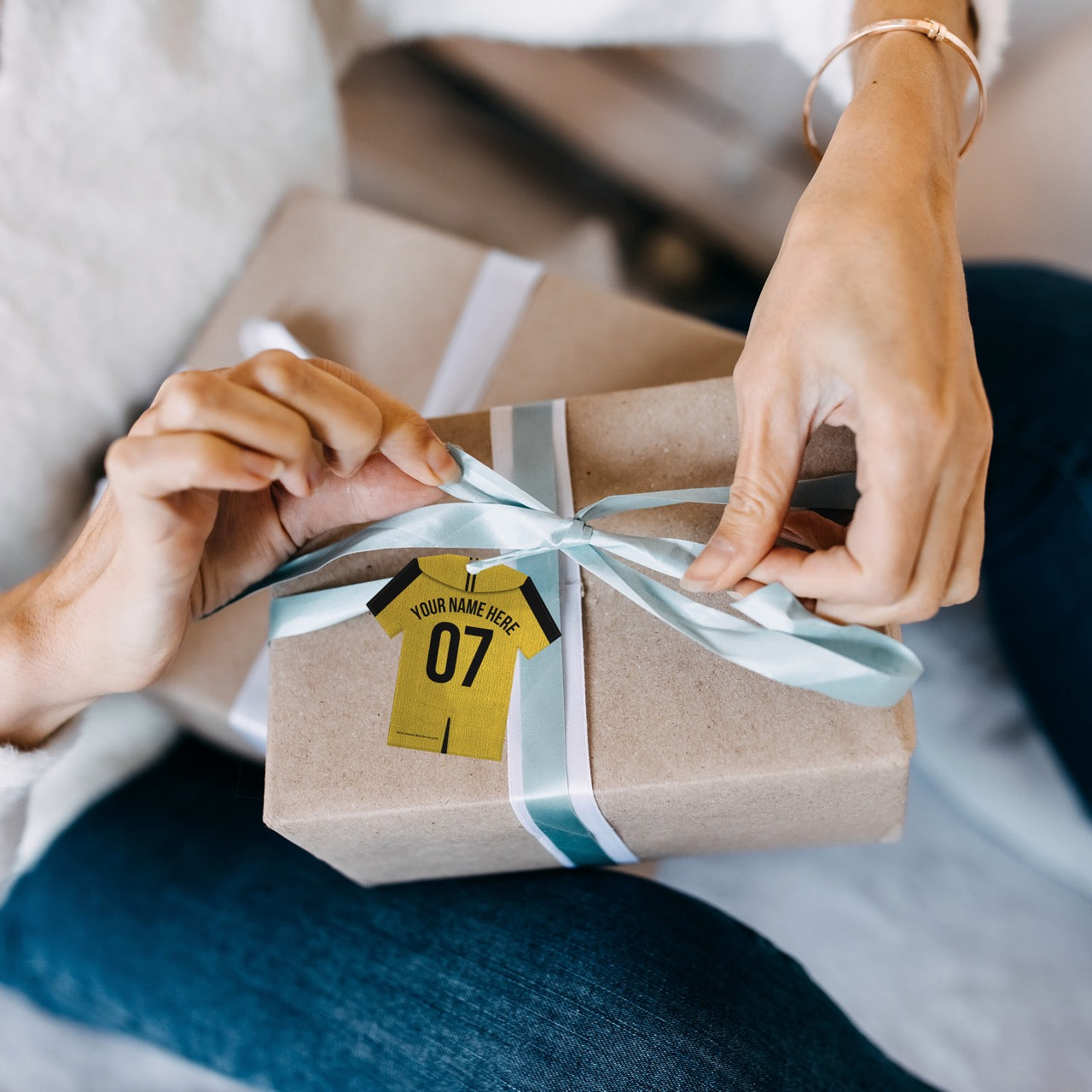 Celebrate your Hufflepuff pride with this customizable jersey-shaped Acrylic Print, inspired by the Quidditch jersey from the Wizarding World of Harry Potter. Designed to resemble a Hufflepuff Quidditch team jersey, this officially licensed piece features a bold Hufflepuff yellow color scheme, black accents, and your choice of name and number for a personal touch.