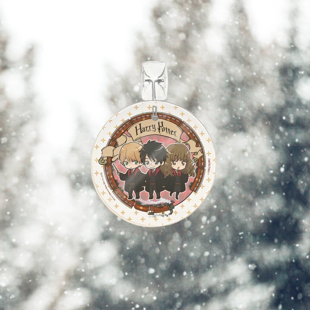 Harry, Ron, and Hermione are off to Hogwarts. Are you joining them? The Chibi forms of each are on display on this StarFire Prints™ Glass Art, complete with the Hogwarts Express circling them. Show off your love of the series by displaying this art anywhere in your house, letting light shine through and enhancing its colors.