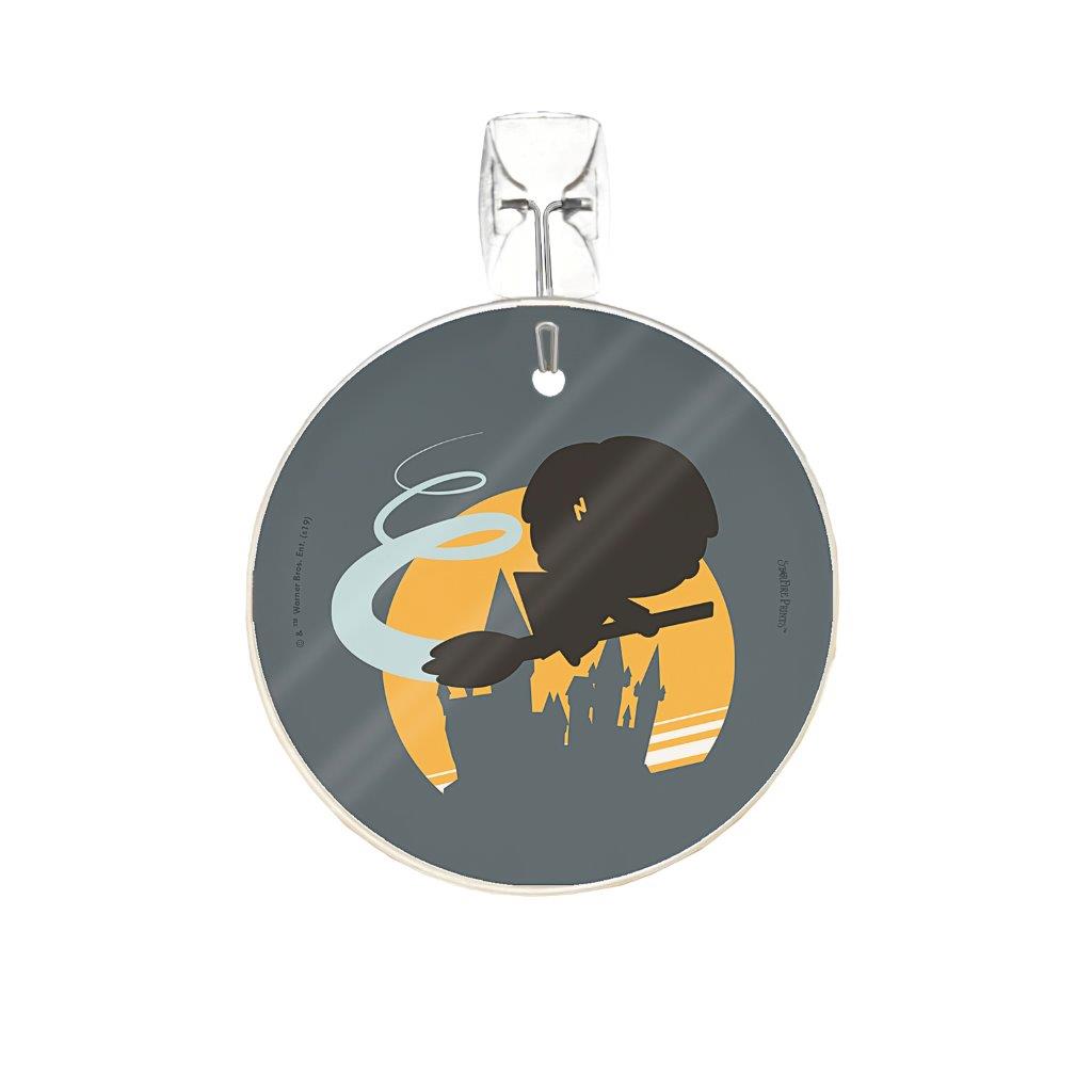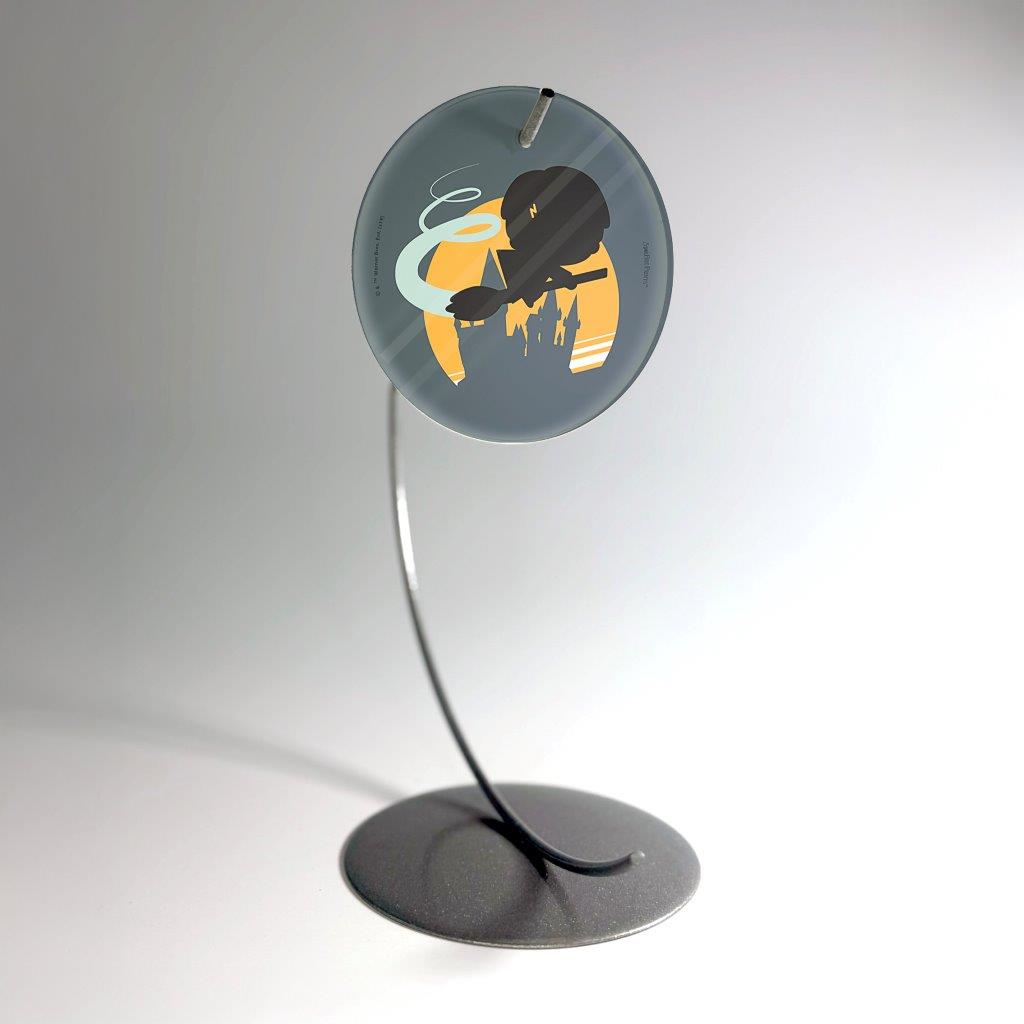 The silhouette of The Boy Who Lived flies in front of Hogwarts Castle in this glass art. Now, you can show off Harry Potter, complete with his lightning bolt scar, anywhere in your house! 3.5” circular glass art.