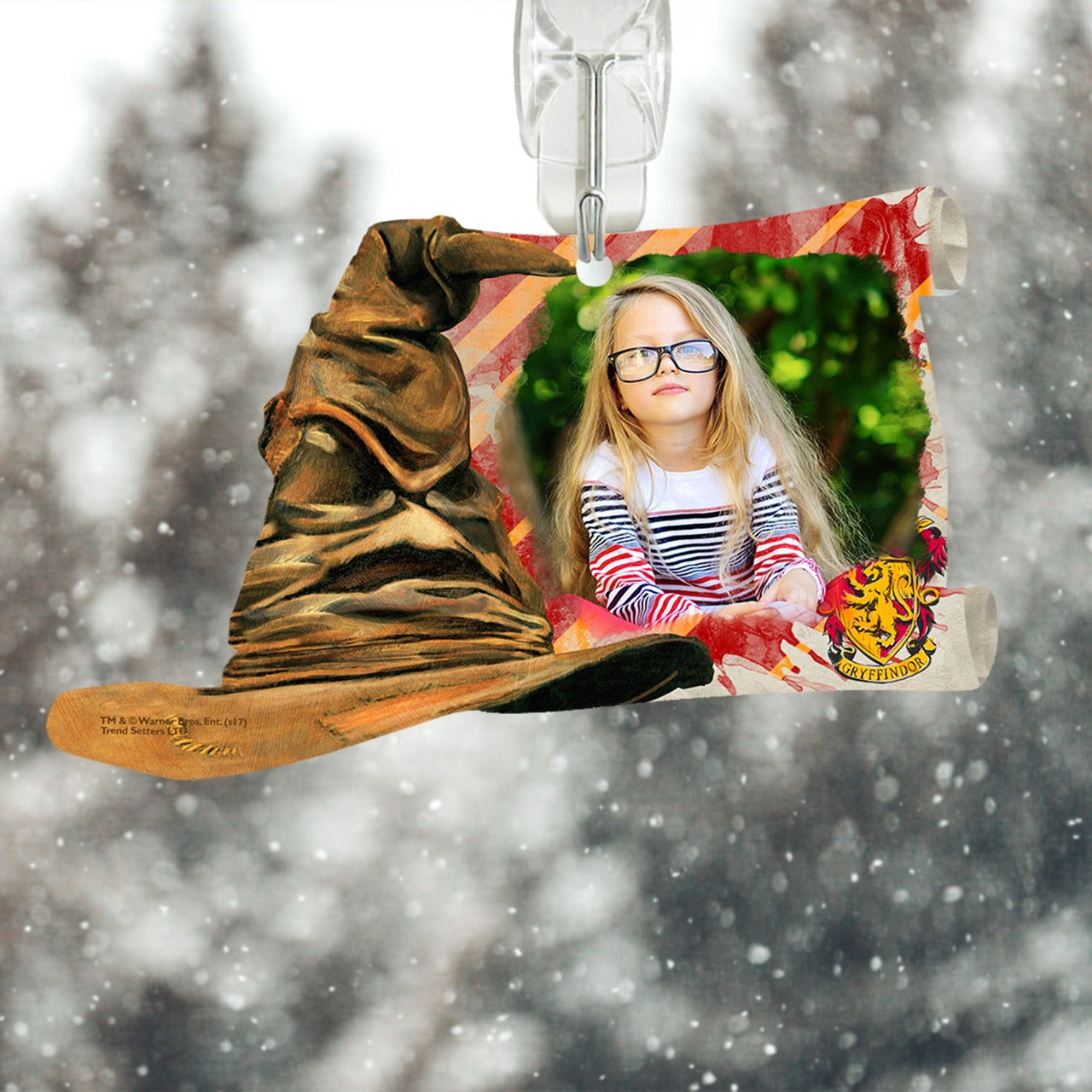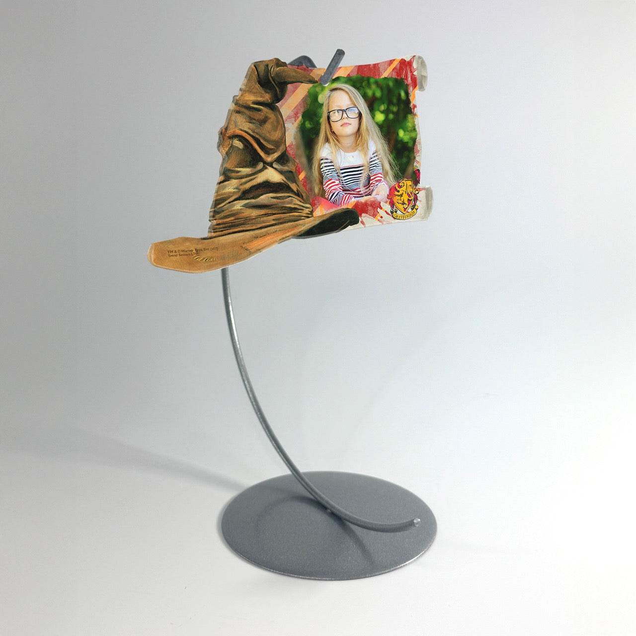 Show off your Hogwarts house pride with this officially licensed Personalized Gryffindor Sorting Hat Acrylic Print! Shaped like the iconic Sorting Hat and scroll, this custom acrylic piece lets you upload your own photo to be featured beneath the bold Gryffindor crest and classic house colors.