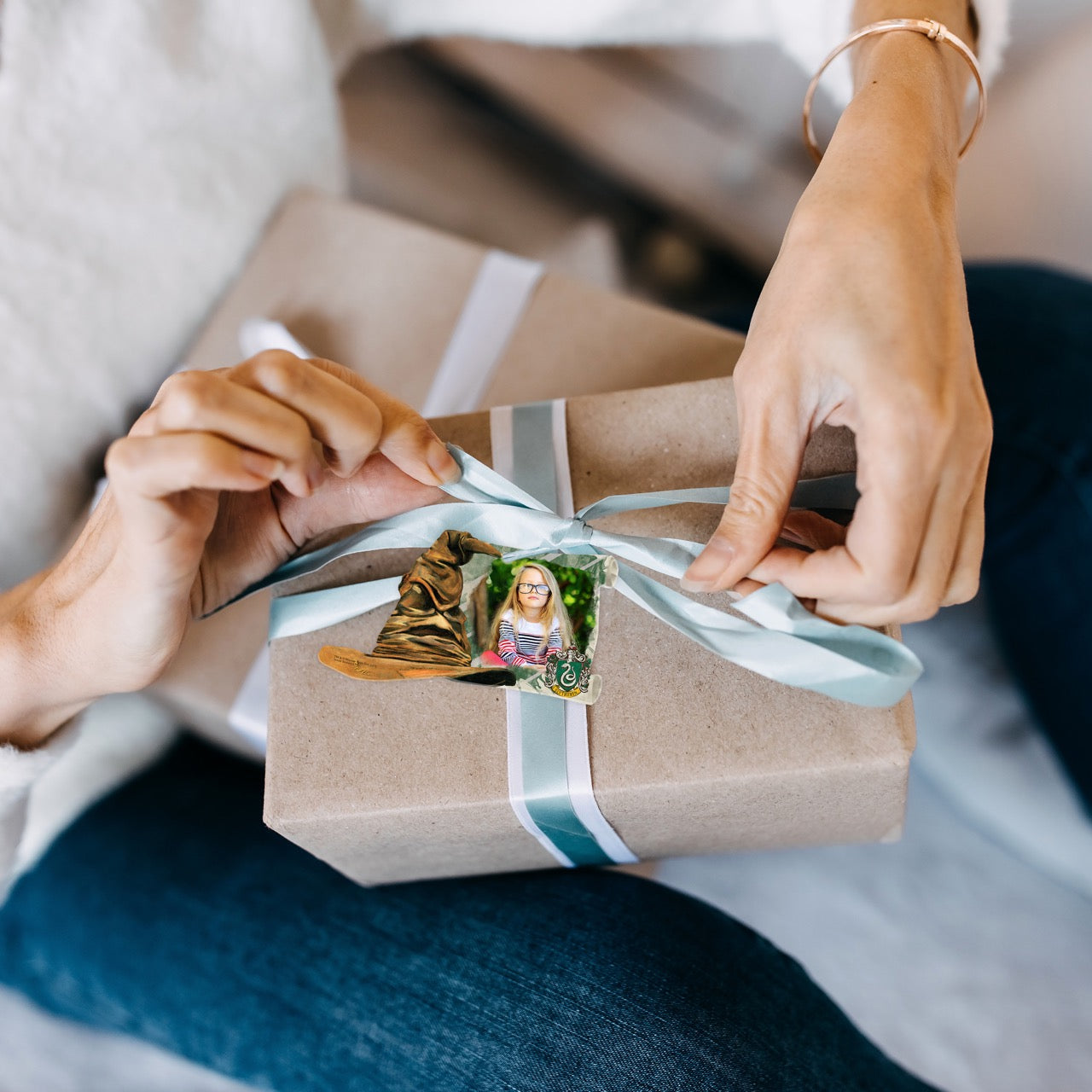 - Vibrant Acrylic Print – This personalized photo upload Harry Potter Sorting Hat and Scroll-Shaped Acrylic Print featuring your photo upload and the Slytherin crest with house colors brings a sleek, modern touch to any space, enhancing your collection and home.