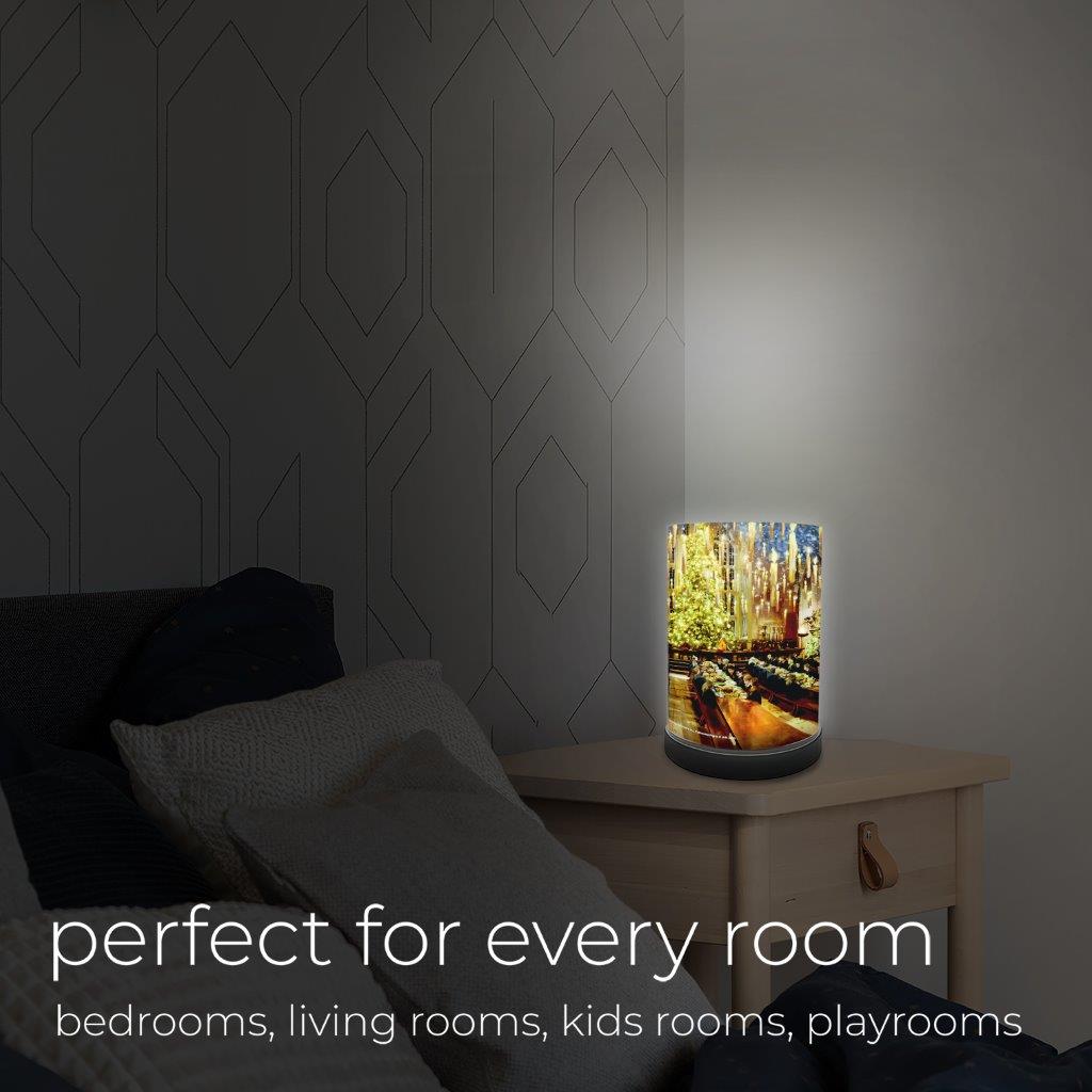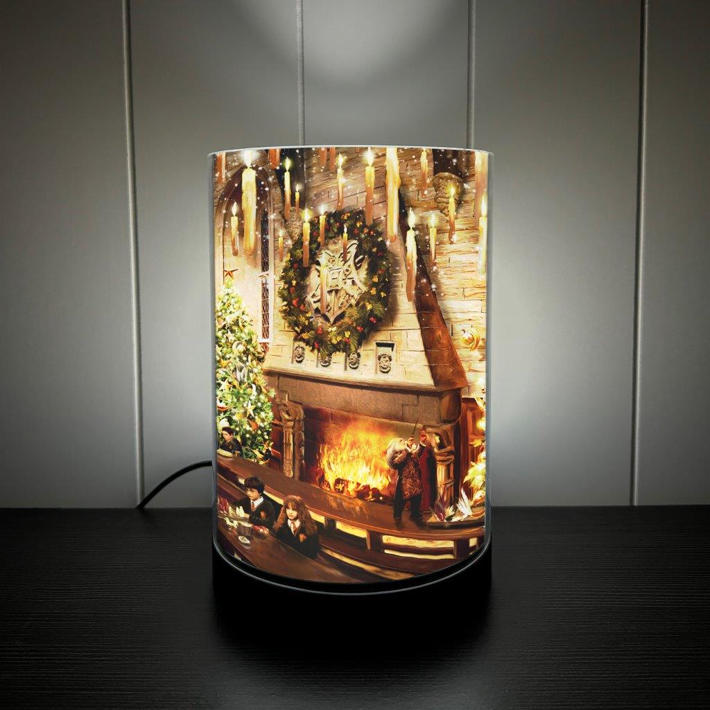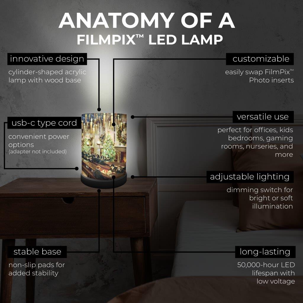 Bring the magic of a Hogwarts Christmas feast into your home with this FilmPix™ Photo Insert. Based on officially licensed Harry Potter artwork by Thomas Kinkade Studios, this glowing scene captures the Great Hall dressed for the holidays—towering Christmas trees, floating candles, snow-kissed windows, and students gathered around long tables while Harry, Ron, and Hermione share a festive moment by candlelight. This insert comes to life when illuminated in a FilmPix™ Light Display (sold separately). Watch the warm fireplace glow, golden ornaments, and enchanted ceiling shine with even richer color and depth.