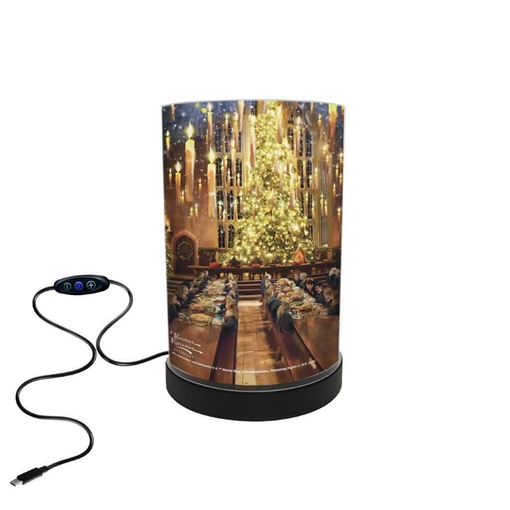 - Officially licensed Thomas Kinkade Studios Harry Potter FilmPix™ Photo Insert featuring the Great Hall dressed for the holidays—towering Christmas trees, floating candles, snow-kissed windows, and students gathered around long tables while Harry, Ron, and Hermione share a festive moment by candlelight.