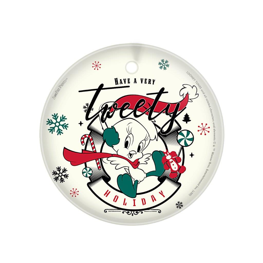Have a very “tweety” holiday! Tweety Bird is all decked out in their winter attire on this 3.5” glass art! This accessory features a design of your favorite Looney Tunes character in muted hues, giving it a retro feel.