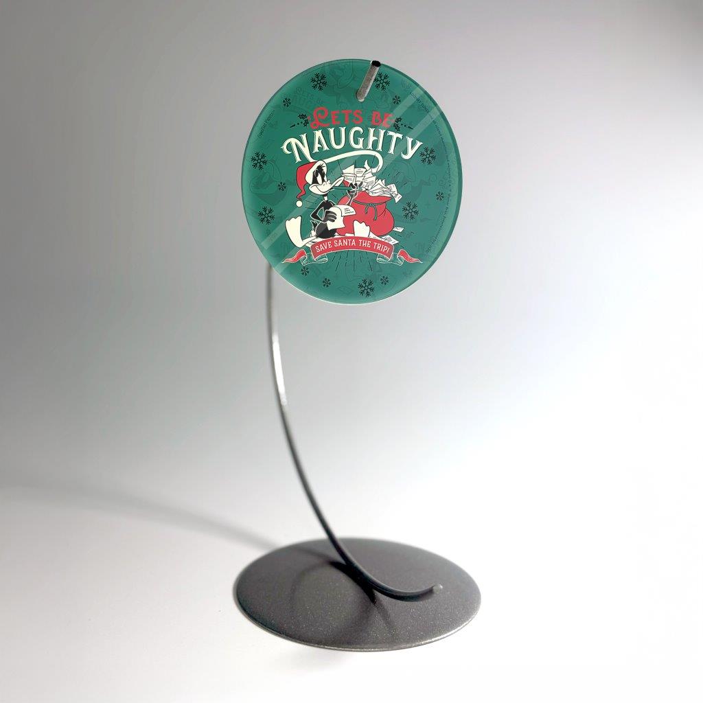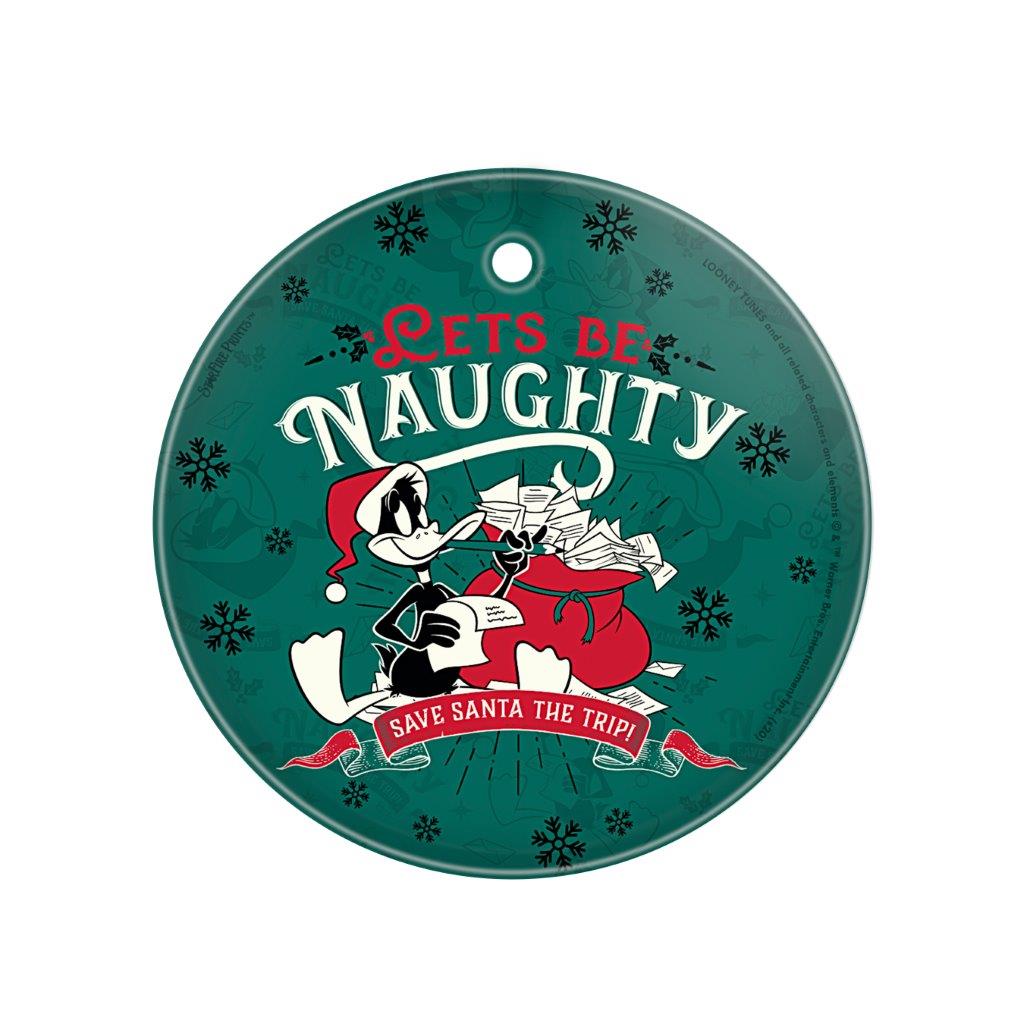 Let's be naughty and save Santa the trip! Daffy Duck is conjuring up an evil plan to cause mischief this holiday season on this 3.5" StarFire Prints™ Glass Art. Featuring traditional red and green hues for the Christmas season, this officially licensed StarFire Prints™ Glass Art has a vintage feel to make it timeless for years to come.