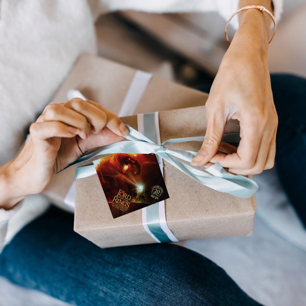 “You shall not pass!” Relive the epic moment when Gandalf battles the Balrog at the Bridge of Khazad-dûm with this glass print. This 3.5” glass art features Gandalf as he battles the Balrog, along with a gold seal for the 20th anniversary of The Lord of the Rings: The Fellowship of the Rings.