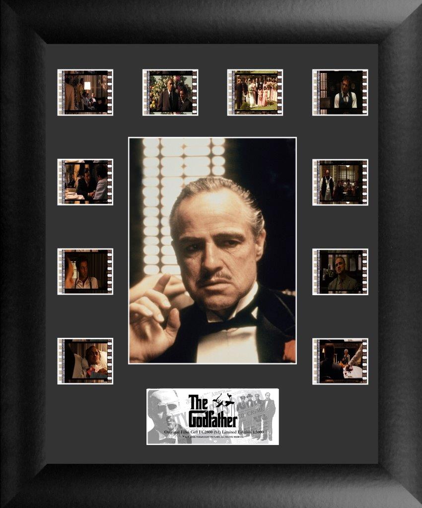 It's an offer you can't refuse. Bring Francis Ford Coppola's The Godfather to your collection with this FilmCells™ presentation. This limited edition collectible features official artwork of Vito Corleone, a certificate of authenticity, and 10 clips of real 35mm film from the movie.