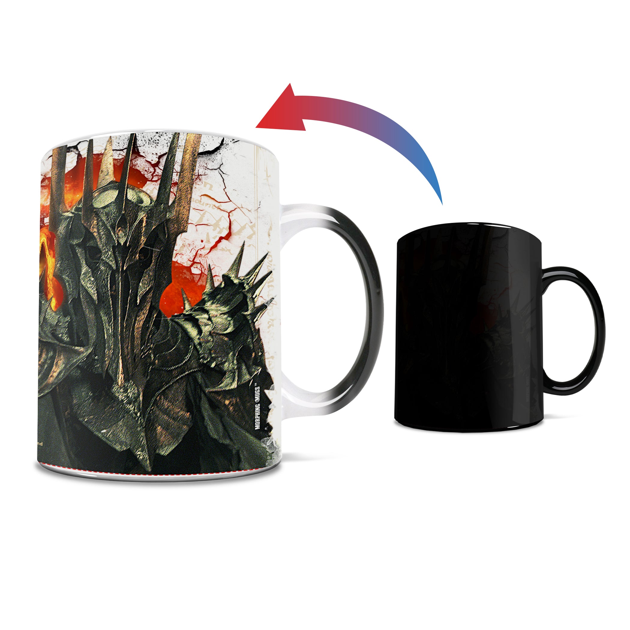 "One ring to rule them all, one ring to find them. One ring to bring them all, and in the darkness bind them." Bring The Lord of the Rings to every hot cup of coffee with this Morphing Mugs® heat-sensitive mug. This collectible mug features the iconic poem and an image of the Dark Lord Sauron. The exterior of this 11oz mug transforms from black as hot liquid is added, revealing the hidden image in full, vivid colors.