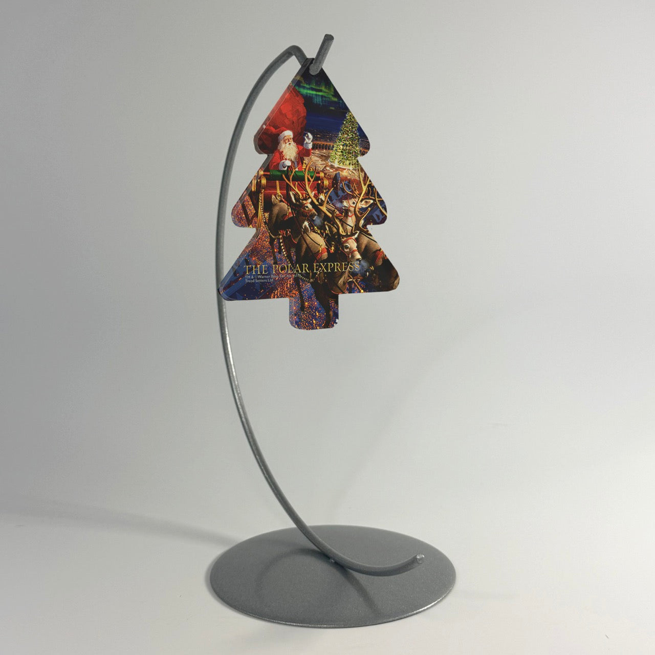 - Vibrant Acrylic Print – This Polar Express Tree-Shaped Acrylic Print features Santa Claus and his reindeer preparing for their magical Christmas Eve flight.