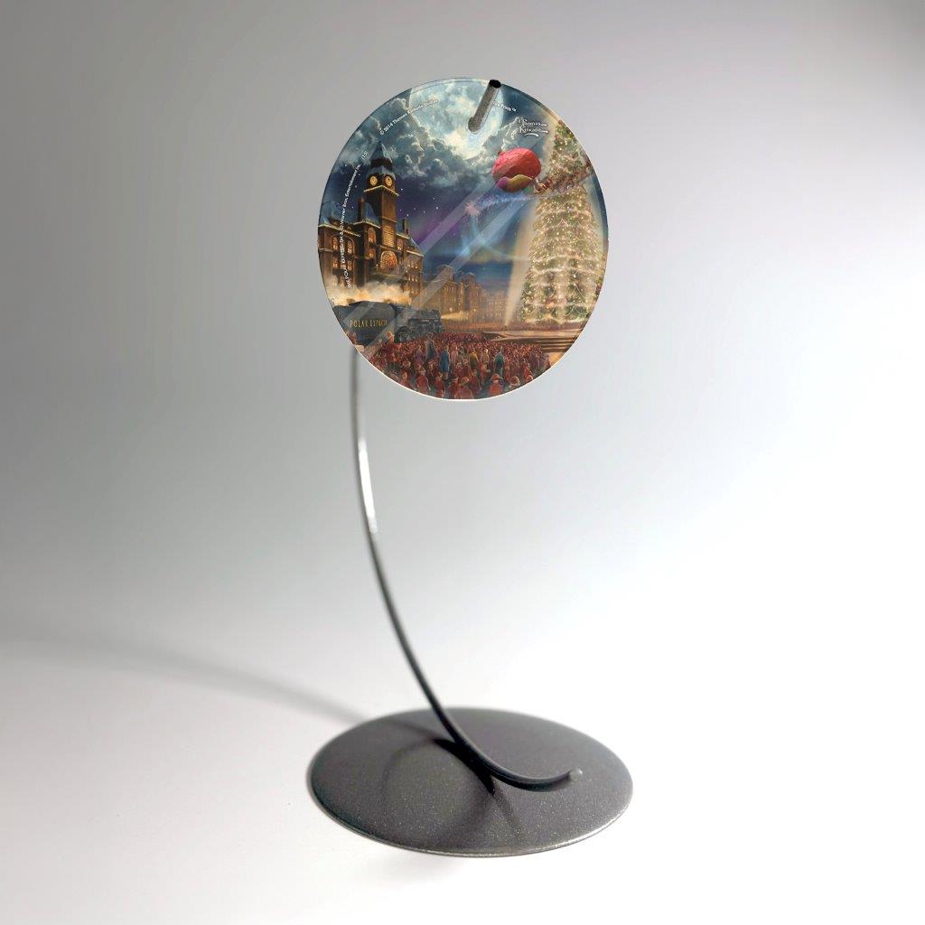 - Stunning Glass Display – This 3.5” round and 3/16” thick The Polar Express light-catching glass art featuring The Polar Express and Santa’s Sleigh beautifully enhances any space, whether placed near a window, on a shelf, or as part of a collection.