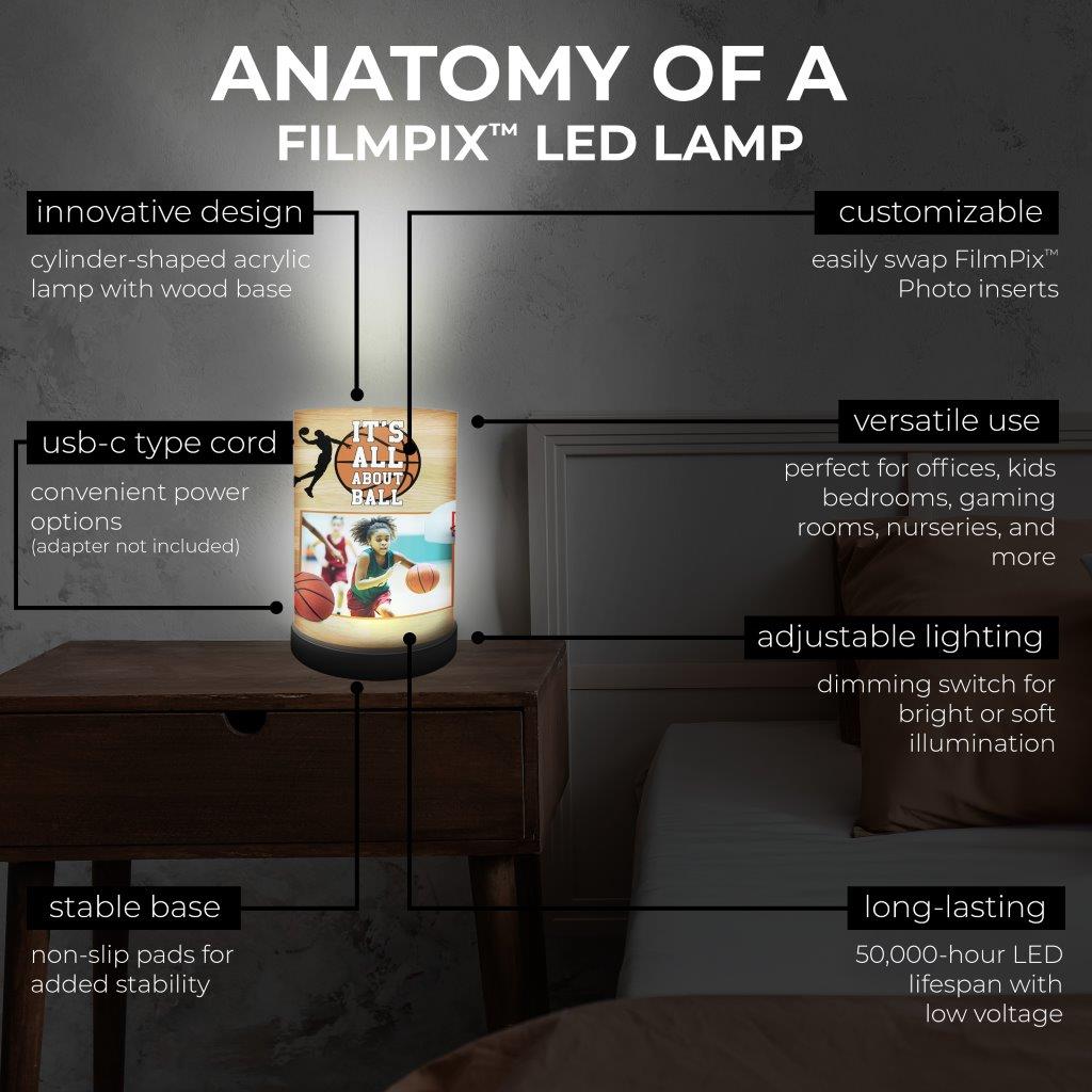 Celebrate every buzzer-beater, fast break, and proud sideline moment with this personalized “It’s All About Ball” FilmPix™ Photo Insert. Designed just for basketball superstars, this custom insert turns your FilmPix™ Light Display (sold separately) into a one-of-a-kind highlight reel. Upload four favorite game photos, then add your player’s name and jersey number to create a collage that looks like it came straight from the gym wall.