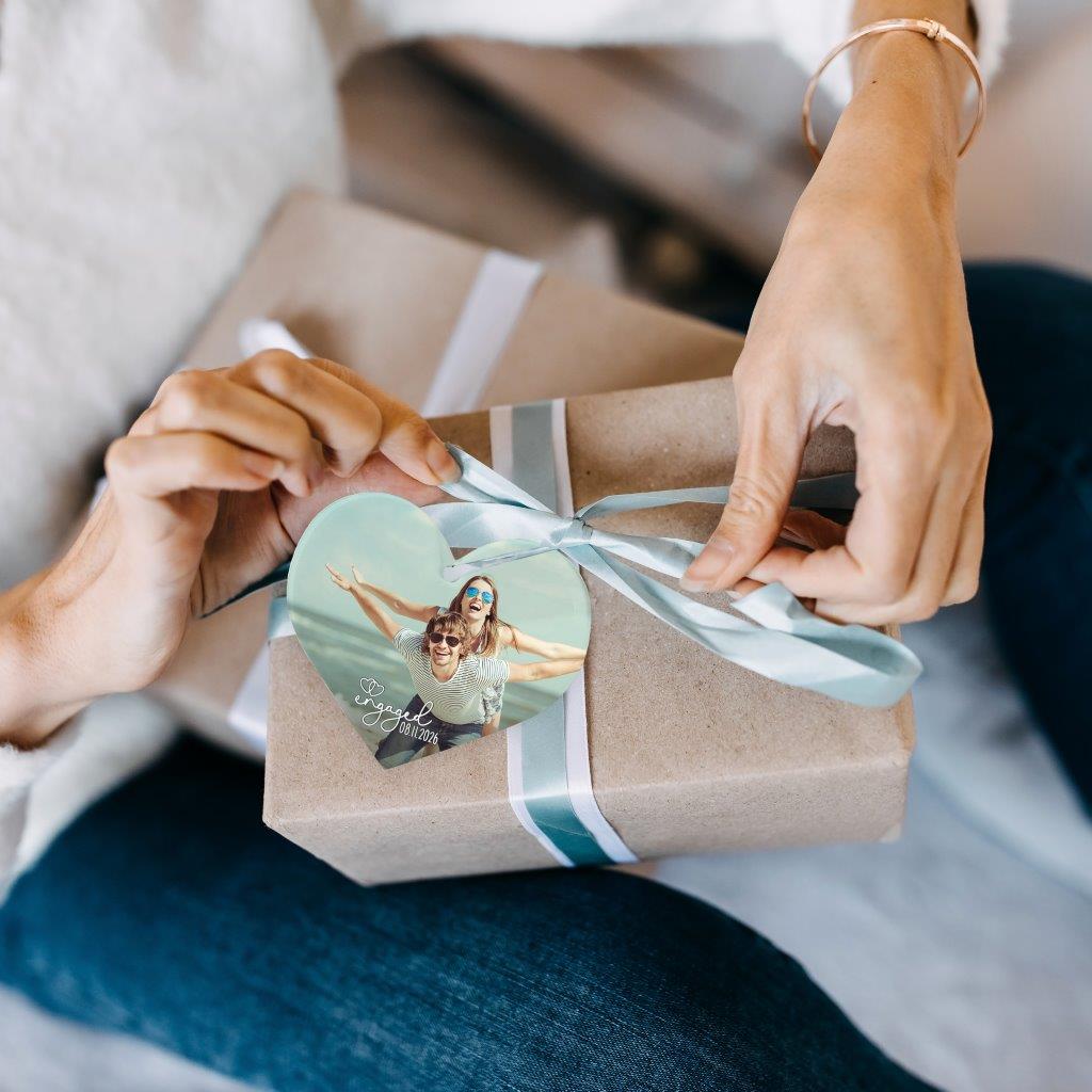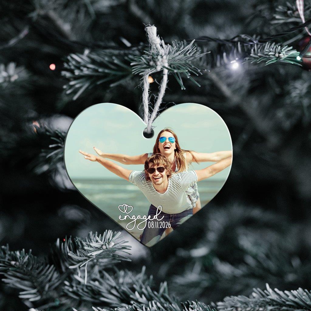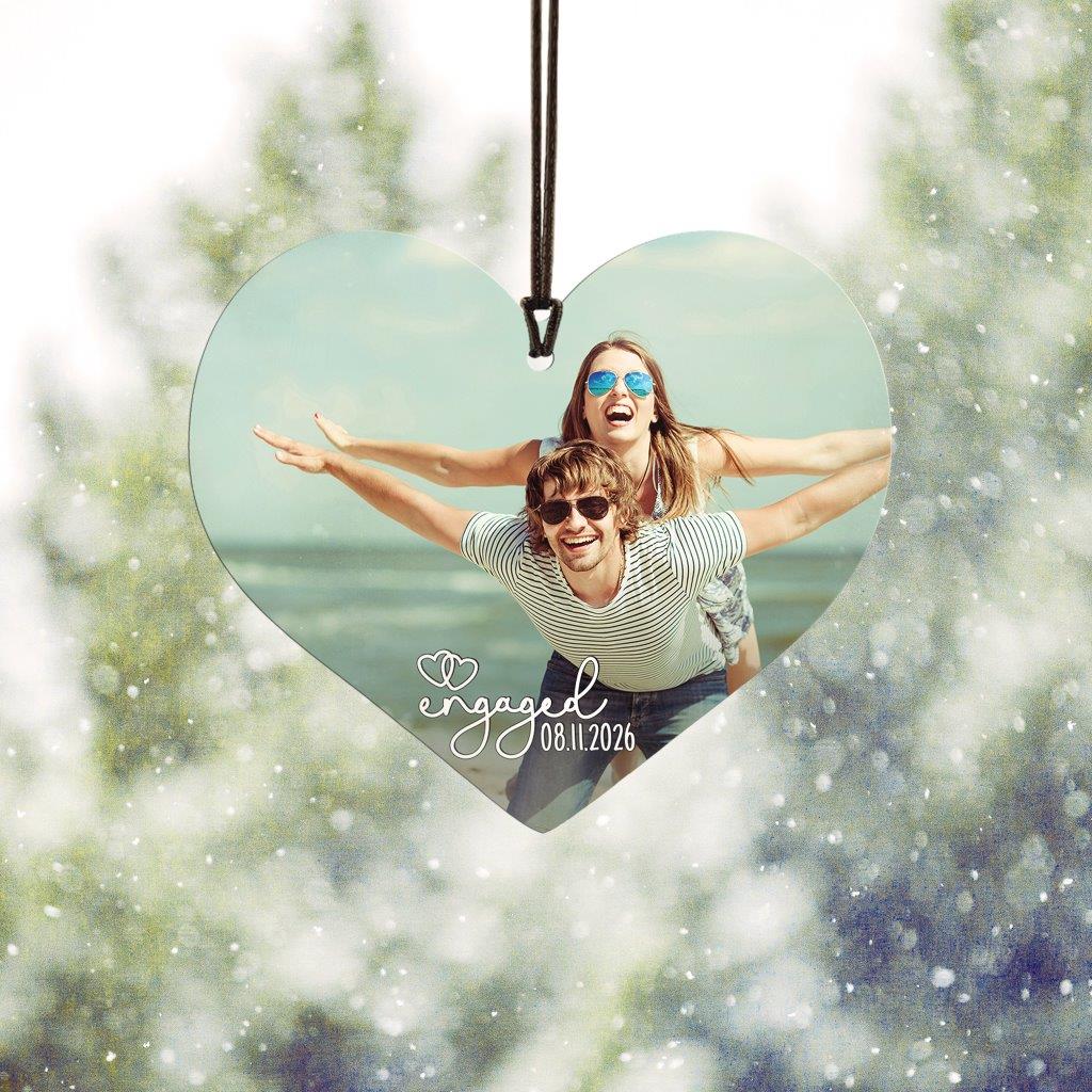 - Trend Setters Original heart-shaped hanging acrylic print featuring your favorite engagement photo, and customized date to create a one-of-a-kind keepsake that’s uniquely yours.