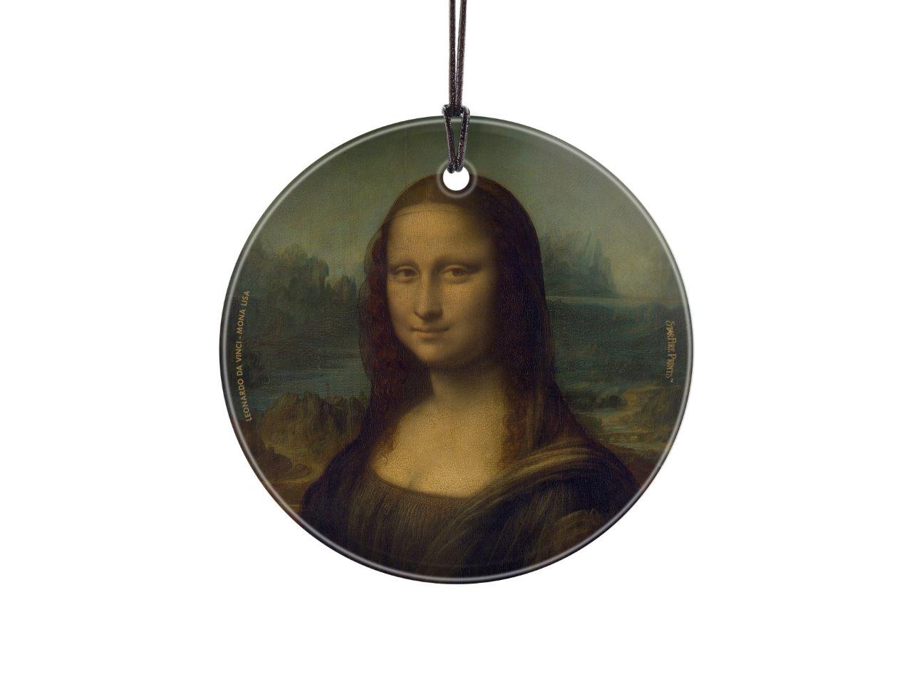 • Stunning Glass Display – This 3.5” round and 3/16” thick light-catching hanging glass print features Mona Lisa by Leonardo da Vinci.