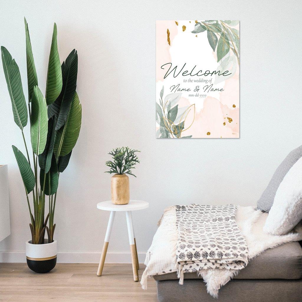 Celebrate your big day with a stunning keepsake that beautifully welcomes guests to your ceremony. This Trend Setters Original Personalized MightyPrint™ Wall Art features an elegant botanical design accented with soft watercolor tones and gold-like details. Customize it with your names and wedding date to create a personalized display that perfectly matches your theme — ideal for framing or displaying at your venue entrance.