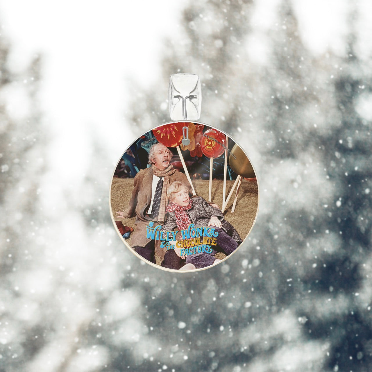 - Stunning Glass Display – This 3.5” round and 3/16” thick Willy Wonka and the Chocolate Factory light-catching glass art featuring Charlie and Grandpa Joe, beautifully enhances any space, whether placed near a window, on a shelf, or as part of a collection.